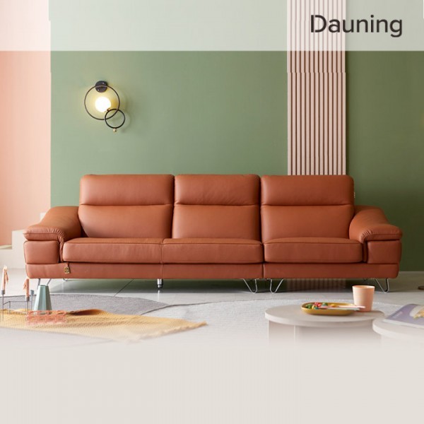 • 다우닝 레아 4인 전체 천연가죽 소파 (색상:진 그레이)
